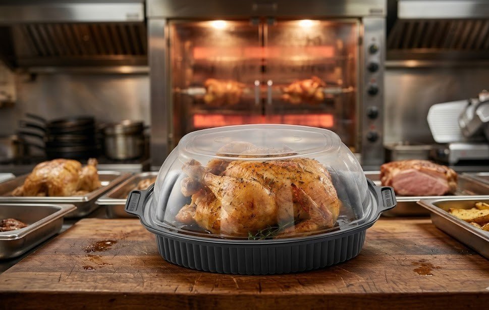 Bandeja con tapa domo para Pollo entero