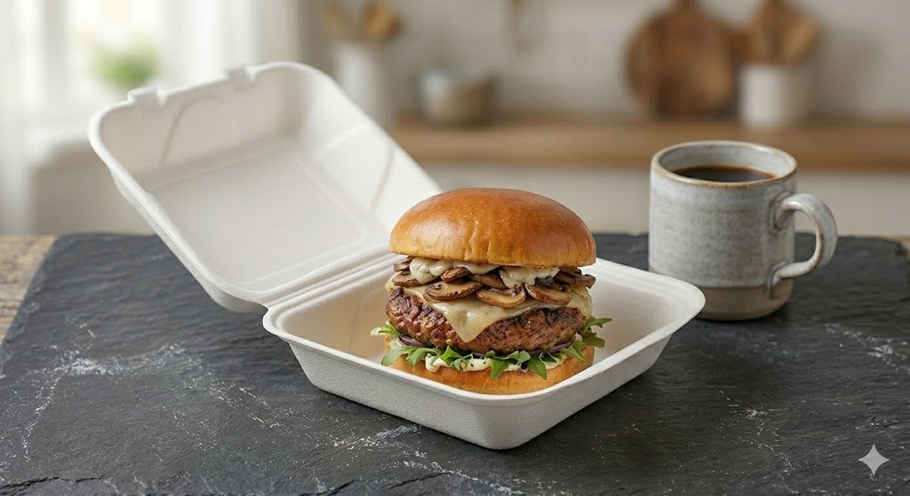 Portacomida de espuma con tapa, hamburguesa 14cm x 12.5cm x 7.5, 100 unidades precio unitario $ 2,70