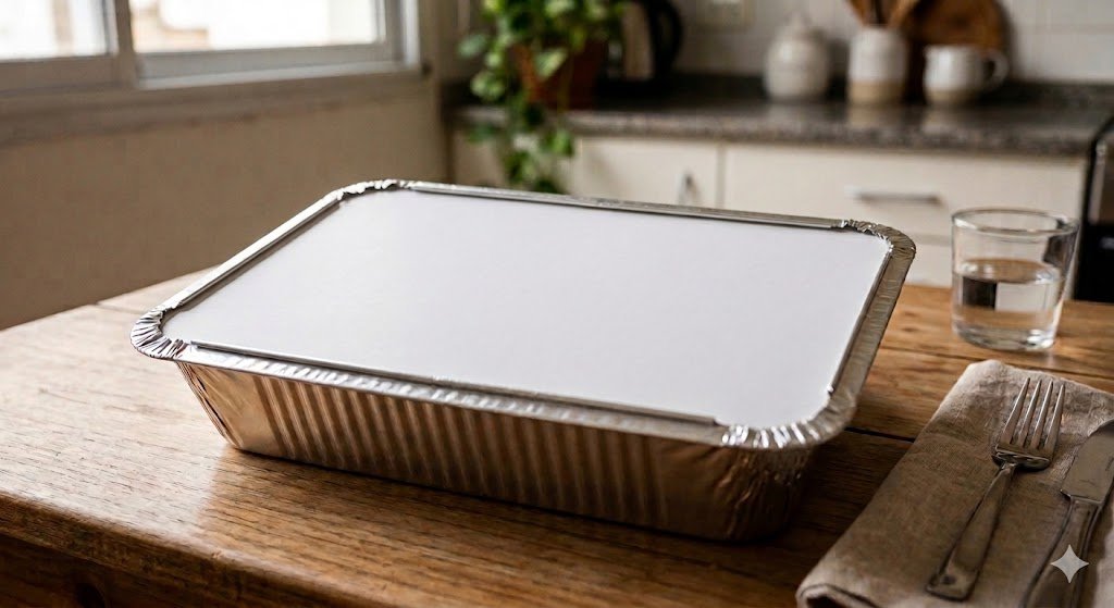 Bandeja de Aluminio rectangular con tapa, con capacidad de 500ml, es la solución ideal para servir y almacenar comidas